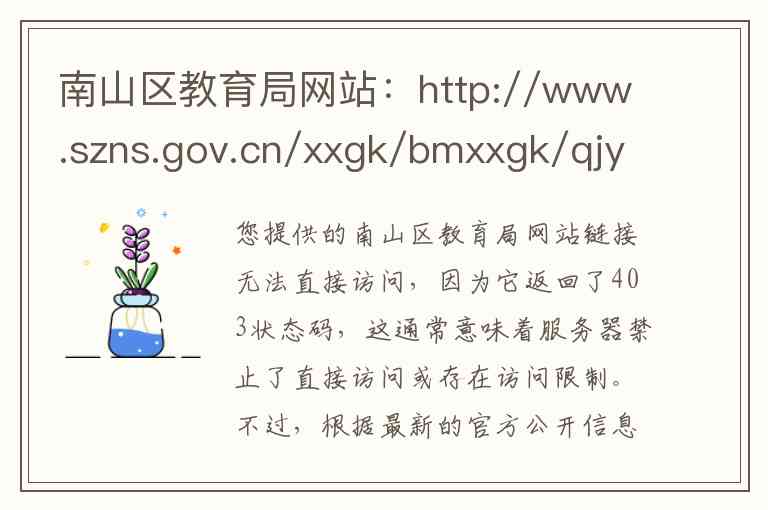 您提供的南山区教育局网站链接无法直接访问,因为它返回了403状态码,这通常意味着服务器禁止了直接访问或存在访问限制。