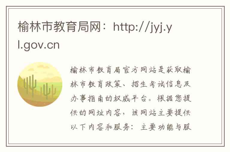 榆林市教育局官方网站是获取榆林市教育政策、招生考试信息及办事指南的权威平台。根据您提供的网址内容,该网站主要提供以下内容和服务: