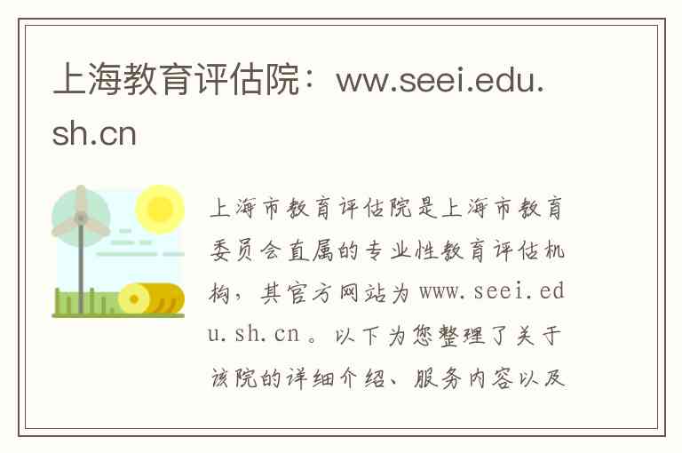 上海市教育评估院是上海市教育委员会直属的专业性教育评估机构,其官方网站为 www.seei.edu.sh.cn 。以下为您整理了关于该院的详细介绍、服务内容以及联系方式。