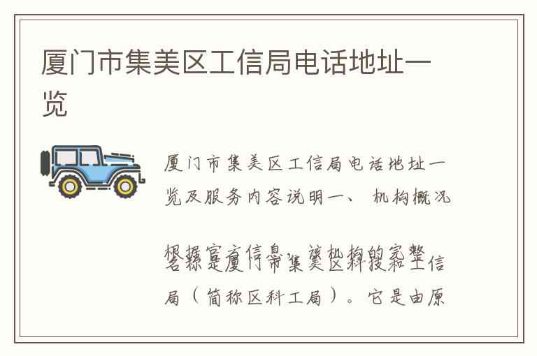 厦门市集美区工信局电话地址一览及服务内容说明
