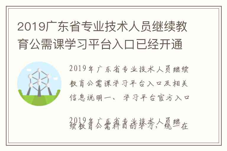 2019年广东省专业技术人员继续教育公需课学习平台入口及相关信息说明