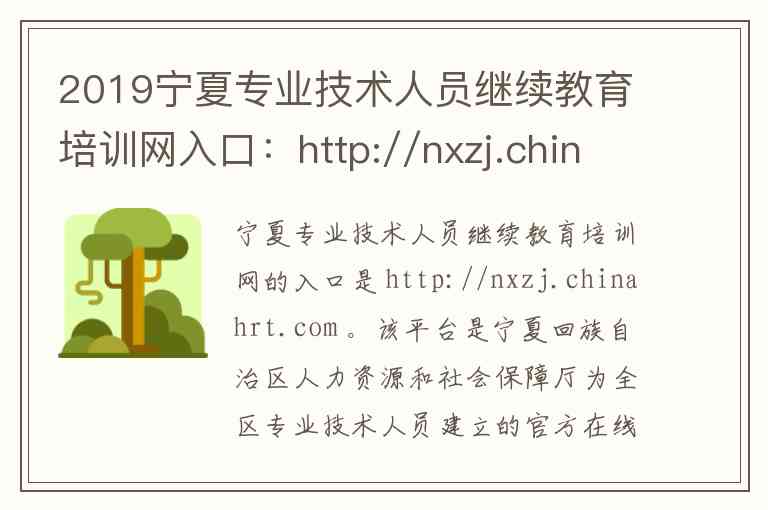 宁夏专业技术人员继续教育培训网的入口是 http://nxzj.chinahrt.com 。该平台是宁夏回族自治区人力资源和社会保障厅为全区专业技术人员建立的官方在线继续教育服务平台 。