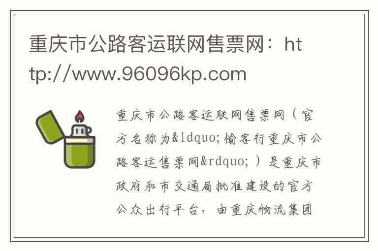 重庆市公路客运联网售票网(官方名称为“愉客行重庆市公路客运售票网”)是重庆市政府和市交通局批准建设的官方公众出行平台,由重庆物流集团数字科技有限公司(原重庆愉客行网络有限公司)负责建设运营。该平台旨在为公众提供一站式、智慧化的出行解决方案,其规模和运营效果位居全国前列。