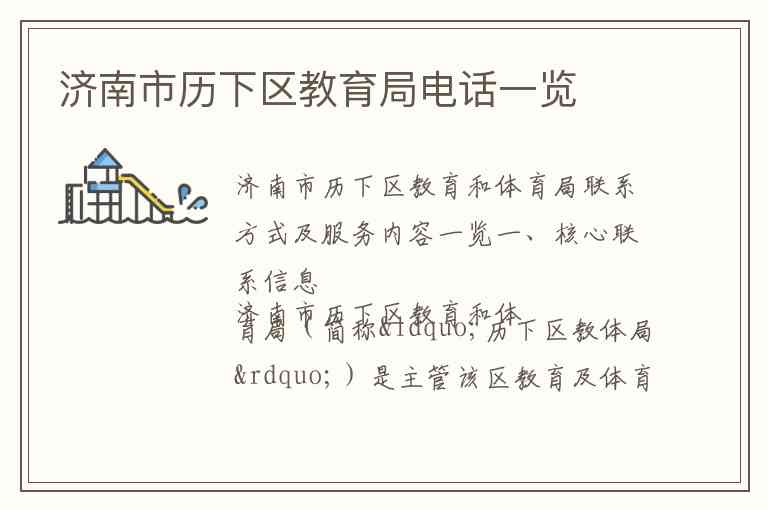 济南市历下区教育和体育局(简称“历下区教体局”)是主管该区教育及体育事业的政府机构。其核心办公信息如下: