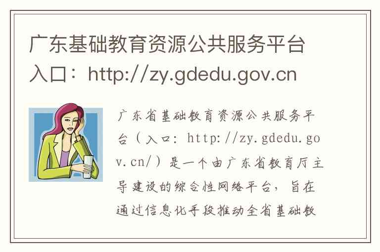 广东省基础教育资源公共服务平台(入口:http://zy.gdedu.gov.cn/)是一个由广东省教育厅主导建设的综合性网络平台,旨在通过信息化手段推动全省基础教育的优质均衡发展,为师生、家长及教育管理者提供一站式数字教育资源与应用服务。