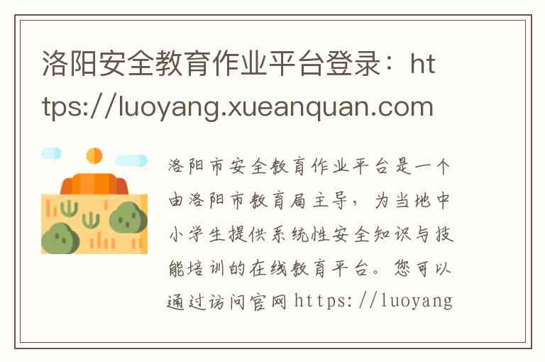 洛阳市安全教育作业平台是一个由洛阳市教育局主导,为当地中小学生提供系统性安全知识与技能培训的在线教育平台。您可以通过访问官网 https://luoyang.xueanquan.com 来使用其各项服务。以下为您详细介绍其核心内容与服务,以及相关的联系信息。