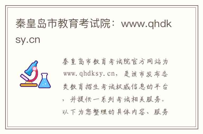 秦皇岛市教育考试院官方网站为 www.qhdksy.cn,是该市发布各类教育招生考试权威信息的平台,并提供一系列考试相关服务。以下为您整理的具体内容、服务、地址及联系方式。