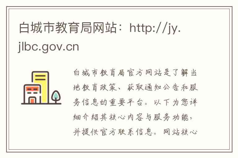 白城市教育局官方网站是了解当地教育政策、获取通知公告和服务信息的重要平台。以下为您详细介绍其核心内容与服务功能,并提供官方联系信息。