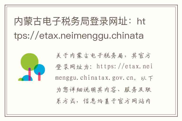 关于内蒙古电子税务局,其官方登录网址为:https://etax.neimenggu.chinatax.gov.cn。以下为您详细说明其内容、服务及联系方式,信息均基于官方网站内容整理。