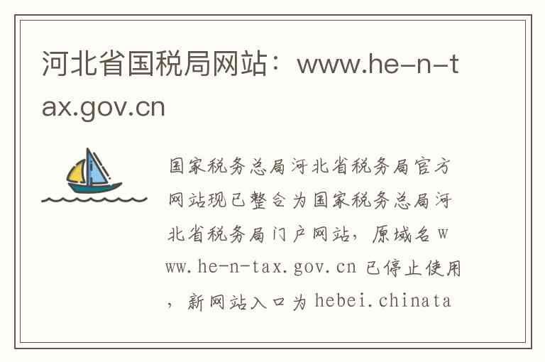 国家税务总局河北省税务局官方网站现已整合为国家税务总局河北省税务局门户网站,原域名 www.he-n-tax.gov.cn 已停止使用,新网站入口为 hebei.chinatax.gov.cn 。该网站是河北省税务局面向纳税人和社会公众提供的一站式政务服务平台,集信息发布、在线办税、互动交流和查询服务等功能于一体。