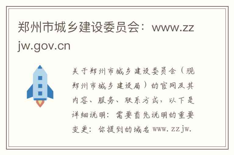 需要首先说明的重要变更:你提到的域名 www.zzjw.gov.cn 原为郑州市城乡建设委员会官网,但根据政府机构改革,郑州市城乡建设委员会现已改组为郑州市城乡建设局。其官方网站的域名也已更新为 zzjsj.zhengzhou.gov.cn 。