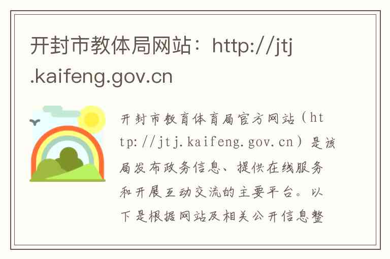 开封市教育体育局官方网站(http://jtj.kaifeng.gov.cn)是该局发布政务信息、提供在线服务和开展互动交流的主要平台。以下是根据网站及相关公开信息整理的具体内容、服务及联系方式。
