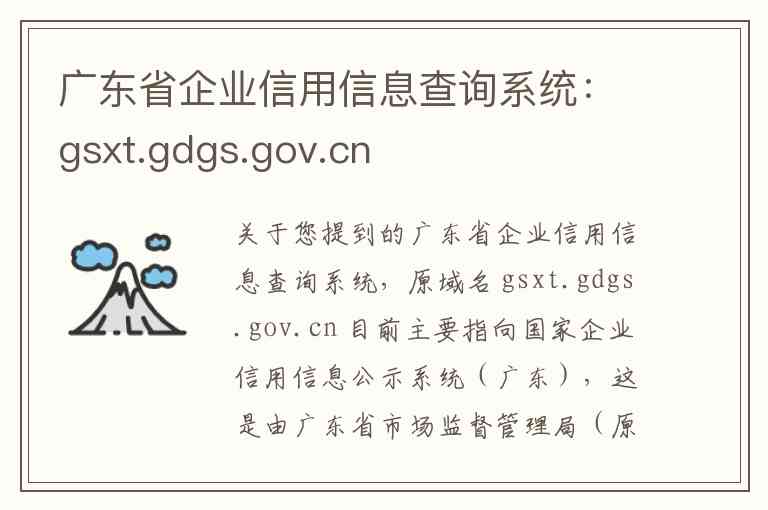 关于您提到的广东省企业信用信息查询系统,原域名 gsxt.gdgs.gov.cn 目前主要指向国家企业信用信息公示系统(广东),这是由广东省市场监督管理局(原广东省工商局)主办的企业信用信息官方查询平台。以下为您详细介绍其具体内容、服务以及相关的地址和联系方式。