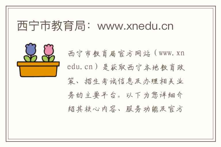 西宁市教育局官方网站(www.xnedu.cn)是获取西宁本地教育政策、招生考试信息及办理相关业务的主要平台。以下为您详细介绍其核心内容、服务功能及官方联系方式。