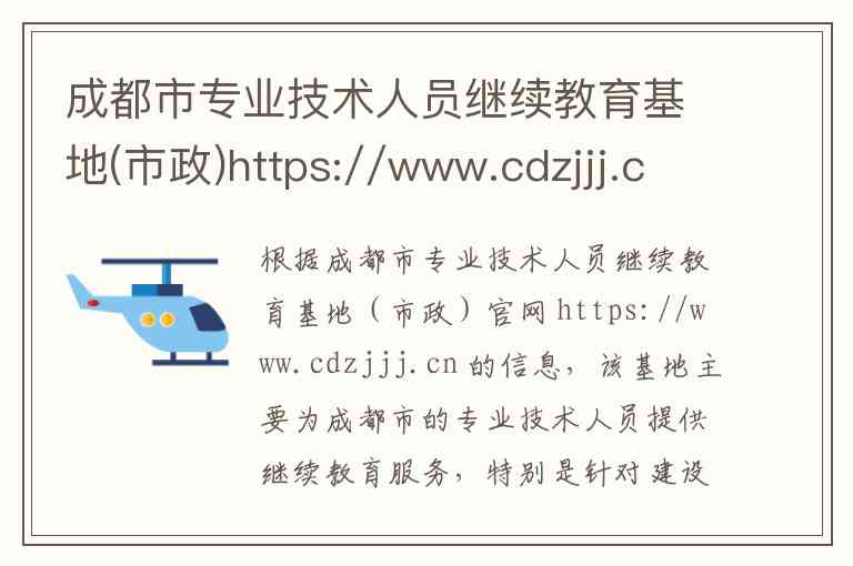 根据成都市专业技术人员继续教育基地(市政)官网 https://www.cdzjjj.cn 的信息,该基地主要为成都市的专业技术人员提供继续教育服务,特别是针对建设、市政工程领域的公需科目和专业科目培训。其核心内容与服务具体说明如下: