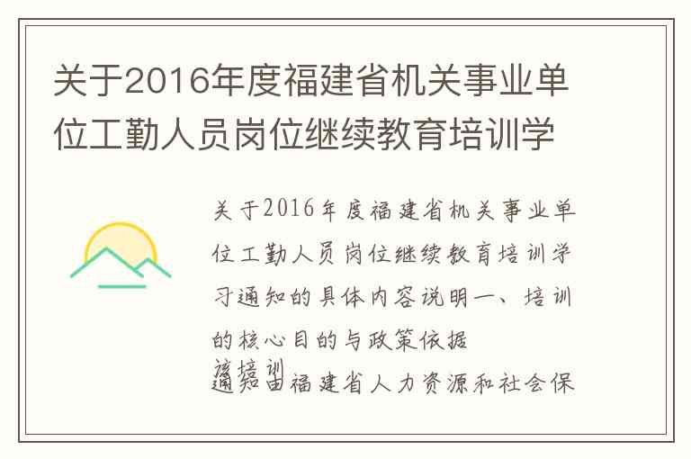 关于2016年度福建省机关事业单位工勤人员岗位继续教育培训学习通知的具体内容说明