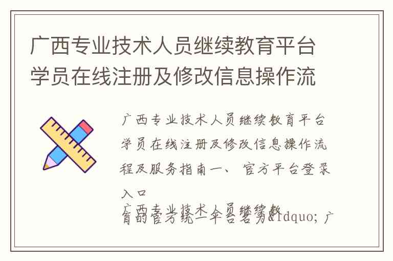 广西专业技术人员继续教育平台学员在线注册及修改信息操作流程及服务指南