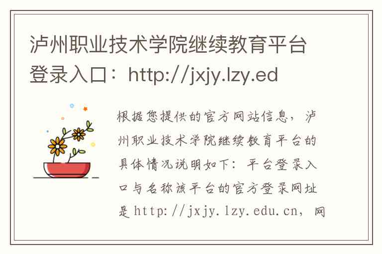 根据您提供的官方网站信息,泸州职业技术学院继续教育平台的具体情况说明如下: