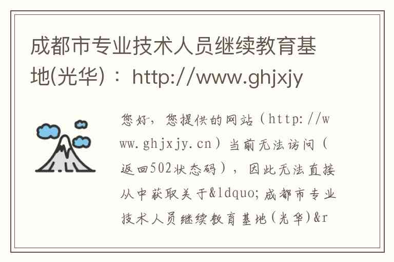 您好,您提供的网站(http://www.ghjxjy.cn)当前无法访问(返回502状态码),因此无法直接从中获取关于“成都市专业技术人员继续教育基地(光华)”的具体信息。