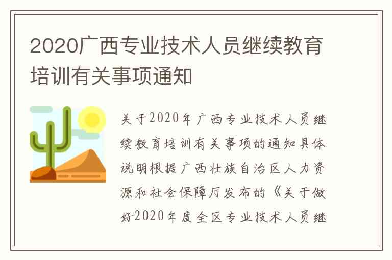 根据广西壮族自治区人力资源和社会保障厅发布的《关于做好2020年度全区专业技术人员继续教育工作的通知》(桂人社函〔2020〕157号),现将2020年广西专业技术人员继续教育培训的相关内容、服务信息及联系方式详细说明如下。