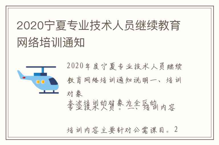 2020年度宁夏专业技术人员继续教育网络培训通知说明