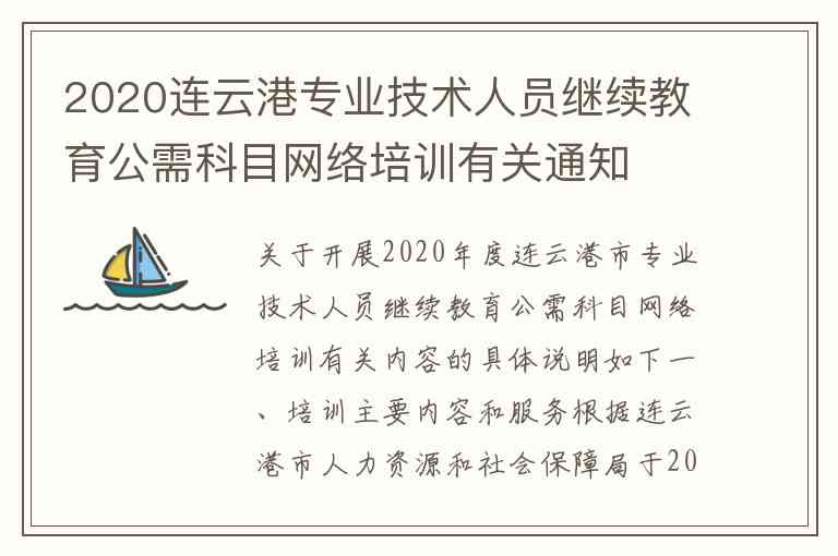 关于开展2020年度连云港市专业技术人员继续教育公需科目网络培训有关内容的具体说明如下