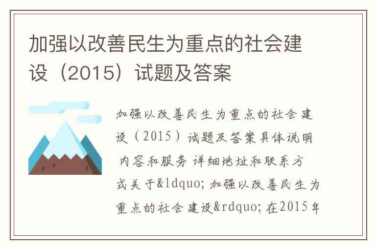 关于“加强以改善民生为重点的社会建设”在2015年前后是各类公职考试中的重要考点,主要依据是党的十七大报告及相关政策文件。以下是该主题的典型试题、答案解析、具体内容服务说明及相关联系方式汇总。