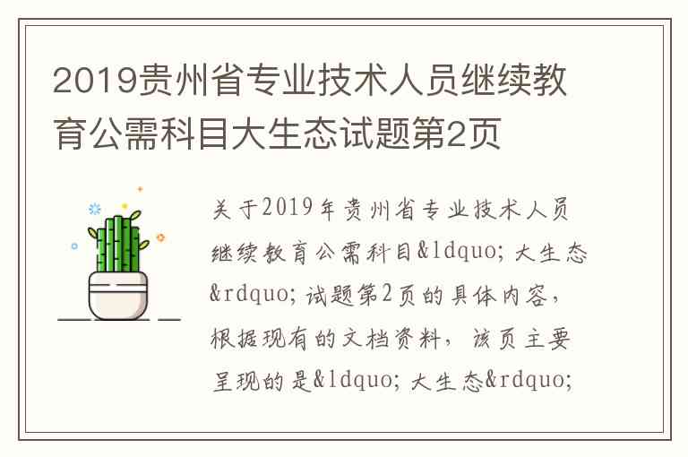 关于2019年贵州省专业技术人员继续教育公需科目“大生态”试题第2页的具体内容,根据现有的文档资料,该页主要呈现的是“大生态”课程的试卷题目。由于第2页是试卷的连续页面,其内容承接第1页,继续列出了多项选择题、判断题以及部分简答题或论述题的题干与选项 。