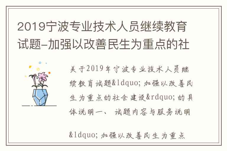 关于2019年宁波专业技术人员继续教育试题“加强以改善民生为重点的社会建设”的具体说明