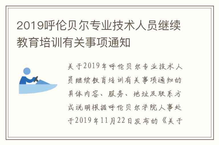 关于2019年呼伦贝尔专业技术人员继续教育培训有关事项通知的具体内容、服务、地址及联系方式说明