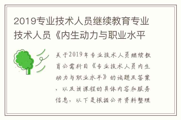 关于2019年专业技术人员继续教育公需科目《专业技术人员内生动力与职业水平》的试题及答案,以及该课程的具体内容和服务信息,以下是根据公开资料整理的详细说明。