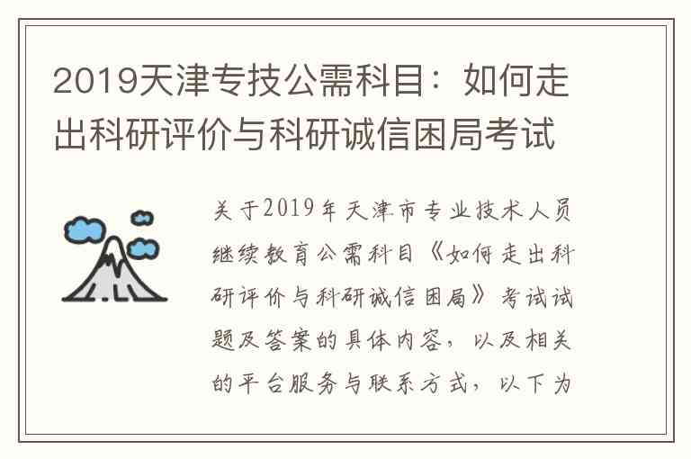 关于2019年天津市专业技术人员继续教育公需科目《如何走出科研评价与科研诚信困局》考试试题及答案的具体内容,以及相关的平台服务与联系方式,以下为您进行详细说明。