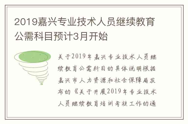 根据嘉兴市人力资源和社会保障局发布的《关于开展2019年专业技术人员继续教育培训考核工作的通知》(嘉人社〔2019〕40号),2019年嘉兴市专业技术人员继续教育公需科目于4月初正式开始 。现将相关内容和服务说明如下: