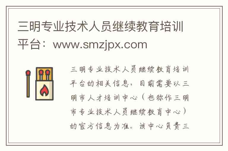 需要特别注意的是,您提供的网址www.smzjpx.com与官方渠道公布的信息不符。根据三明市人力资源和社会保障局及相关政府部门的正式通知,该培训中心的正确官方网址应为:www.smrcpx.com。为避免信息错误,以下所有内容均基于正确的官方信息进行整理。