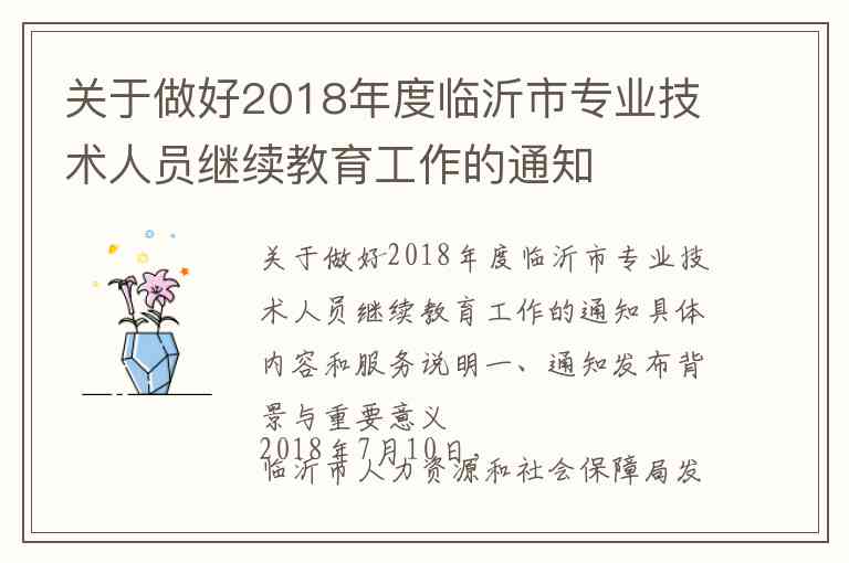 关于做好2018年度临沂市专业技术人员继续教育工作的通知具体内容和服务说明