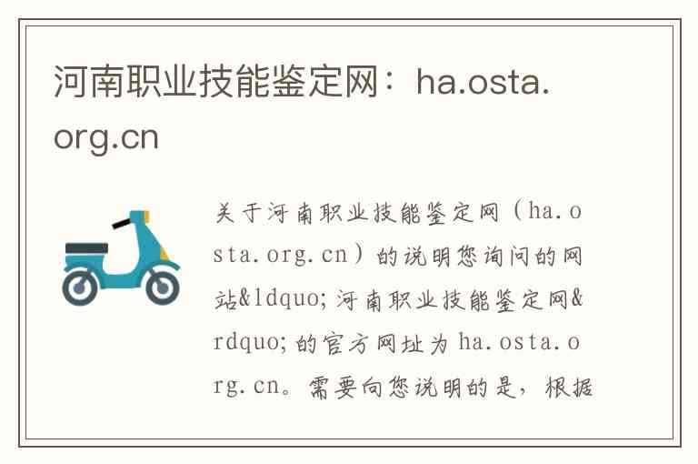 您询问的网站“河南职业技能鉴定网”的官方网址为 ha.osta.org.cn。需要向您说明的是,根据最新信息,这个原网站现已更名为“河南省技能人才评价工作网”,并启用了新的主域名 。以下为您详细介绍其内容、服务及联系方式。