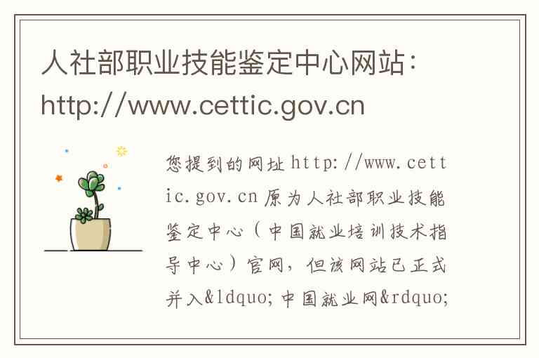 您提到的网址 http://www.cettic.gov.cn 原为人社部职业技能鉴定中心(中国就业培训技术指导中心)官网,但该网站已正式并入“中国就业网”。以下是基于官方声明的整合说明及最新的联系信息。