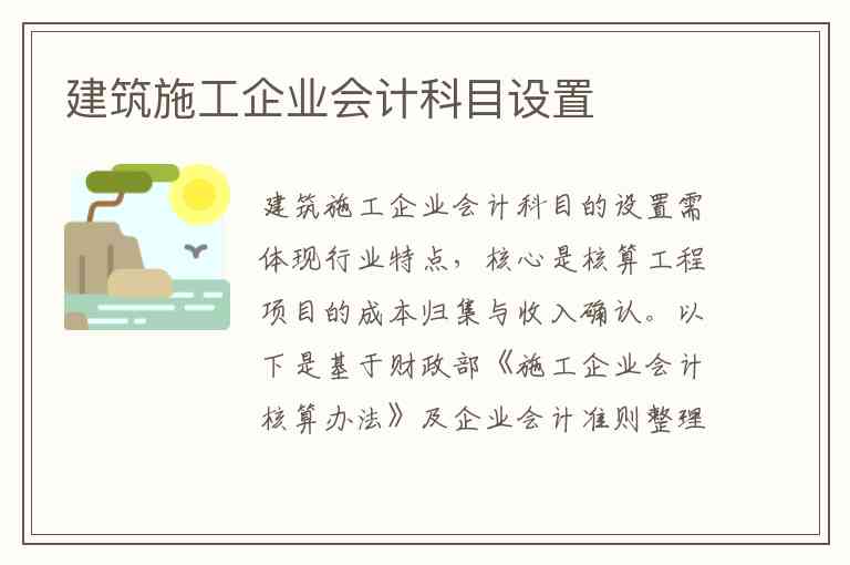 希望以上关于建筑施工企业会计科目的具体说明以及相关的学习与服务资源能对您有所帮助。