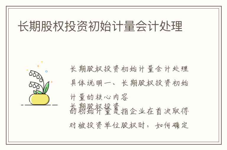 希望以上内容能帮助您全面了解长期股权投资初始计量的会计处理。如有进一步的实务操作问题,建议直接联系上述专业机构获取针对性指导。