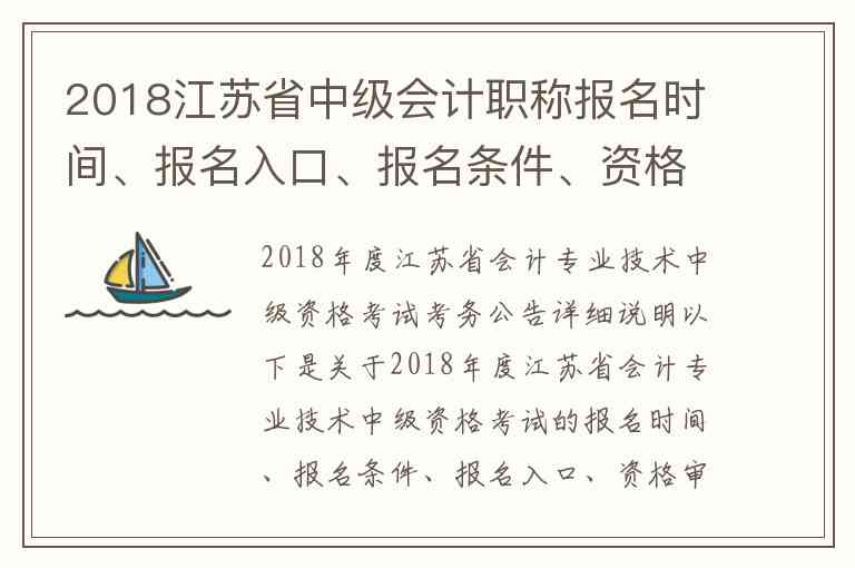 以下是关于2018年度江苏省会计专业技术中级资格考试的报名时间、报名条件、报名入口、资格审核、考试相关安排以及政策咨询方式的详细说明,所有信息均根据江苏省财政厅发布的官方通知整理。