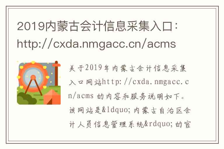 关于2019年内蒙古会计信息采集入口网站http://cxda.nmgacc.cn/acms 的内容和服务说明如下。