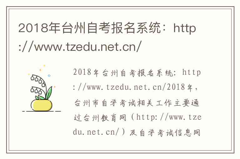 2018年台州自考报名系统:http://www.tzedu.net.cn/