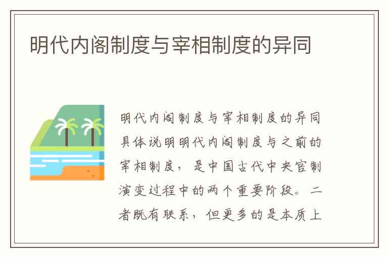 明代内阁制度与之前的宰相制度,是中国古代中央官制演变过程中的两个重要阶段。二者既有联系,但更多的是本质上的区别。以下从设立背景、机构性质、主要职权、任职方式以及对皇权的影响等方面,具体说明其异同。