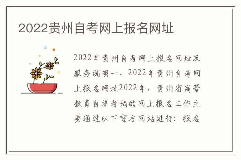 2022年,贵州省高等教育自学考试的网上报名工作主要通过以下官方网站进行:
