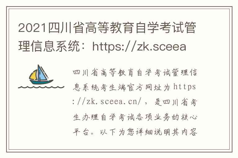 四川省高等教育自学考试管理信息系统考生端官方网址为 https://zk.sceea.cn/ ,是四川省考生办理自学考试各项业务的核心平台。以下为您详细说明其内容服务及联系方式。