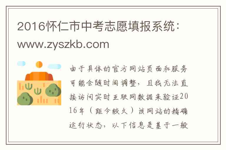 由于具体的官方网站页面和服务可能会随时间调整,且我无法直接访问实时互联网数据来验证2016年(距今较久)该网站的精确运行状态,以下信息是基于一般中考志愿填报系统的通用功能、以及该域名可能关联的教育机构进行的整理。