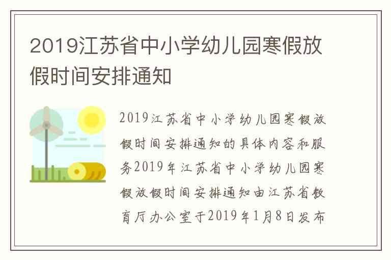 2019江苏省中小学幼儿园寒假放假时间安排通知的具体内容和服务
