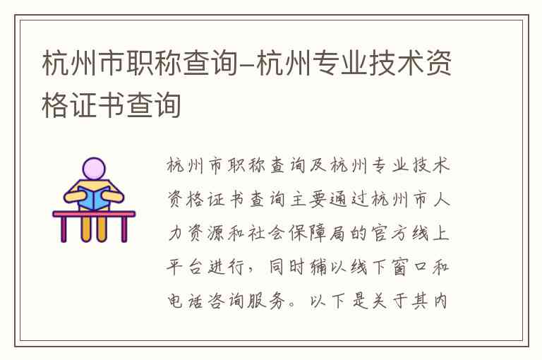 杭州市职称查询及杭州专业技术资格证书查询主要通过杭州市人力资源和社会保障局的官方线上平台进行,同时辅以线下窗口和电话咨询服务。以下是关于其内容、服务、地址及联系方式的详细说明。