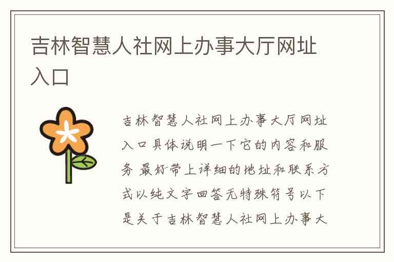 吉林智慧人社网上办事大厅网址入口具体说明一下它的内容和服务 最好带上详细的地址和联系方式以纯文字回答无特殊符号