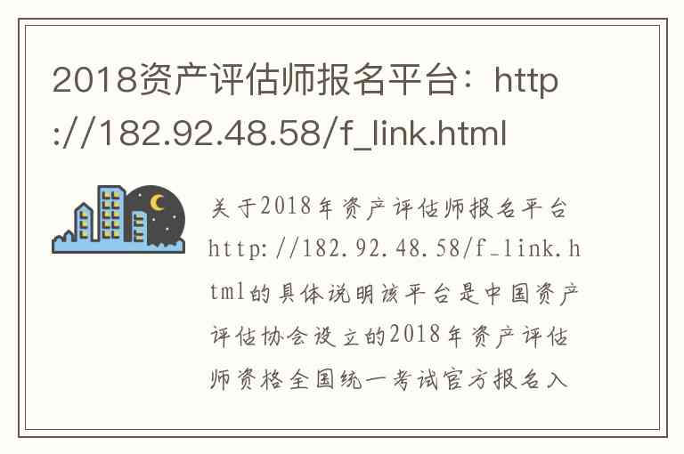 关于2018年资产评估师报名平台http://182.92.48.58/f_link.html的具体说明